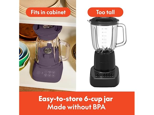 - Easy-Pour Jar: The 6-cup, BPA-free jar is designed with a generous handle and an easy-pour spout, making it simple to serve your creations without spills. The removable measuring cap in the lid allows for precise ingredient additions while blending