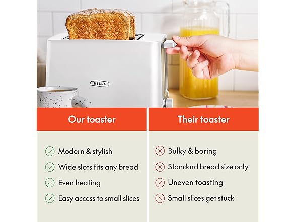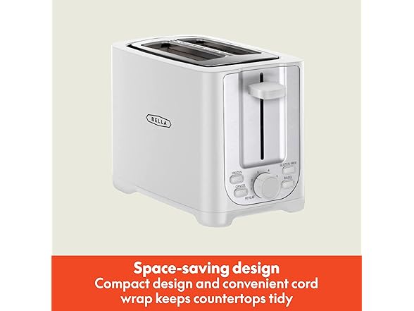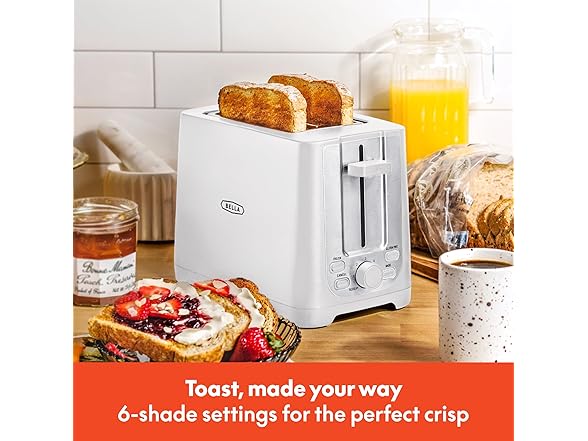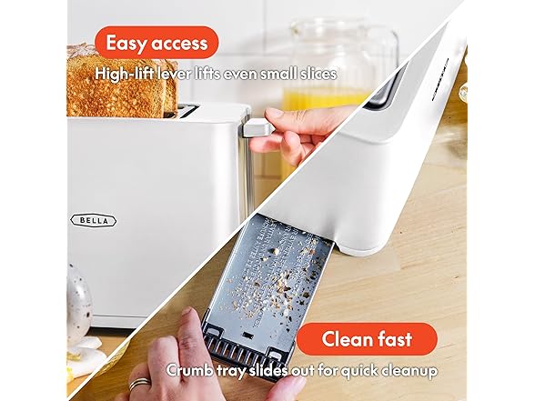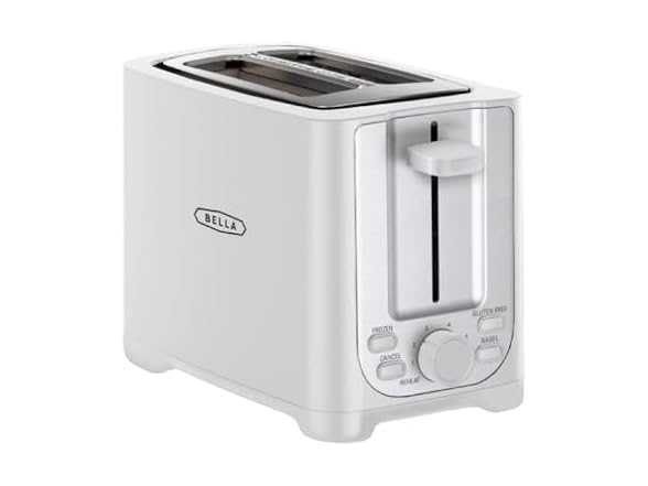 BELLA 2 Slice Toaster with Auto Shut Off - Extra Wide Slots & Removable Crumb Tray and Cancel, Defrost & Reheat Function - Toast Bread, Bagel & Waffle, White