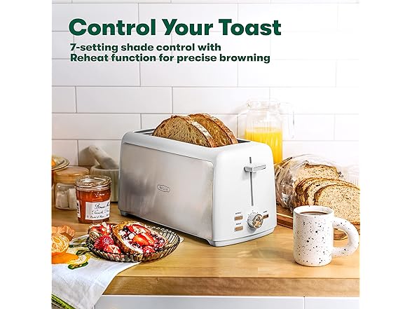 - GET THE TOASTY TASTE YOU LOVE - Our slender and elegant popup 2 slot toaster offers 7 shading options to help you achieve the perfect level of toasty goodness. With self-centering guides and a high-lift lever, you'll get even browning and easy access every time