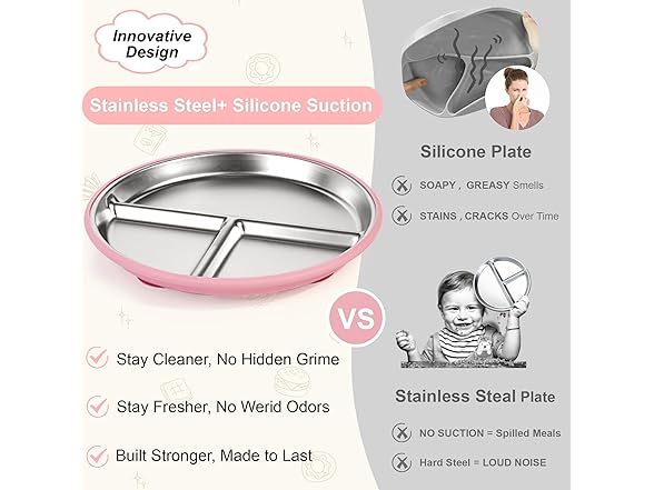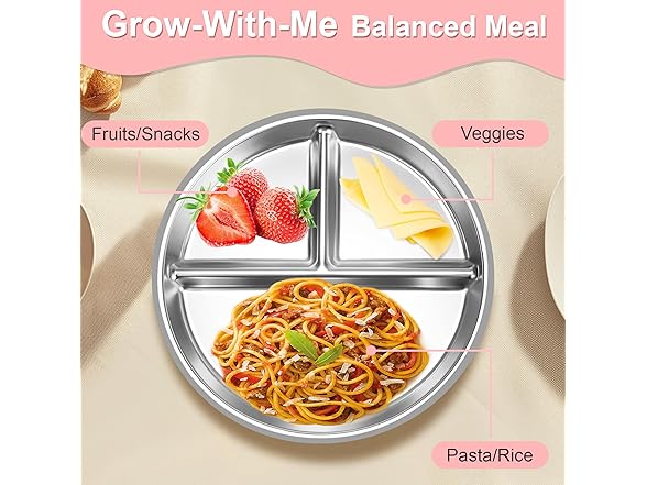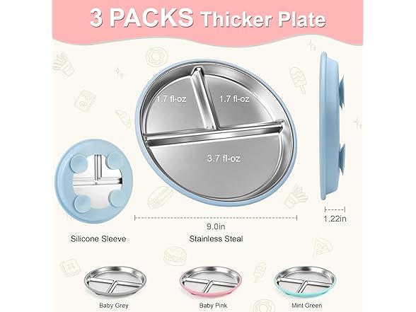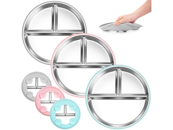Bella's Friends Kids Plates Grey Green Pink