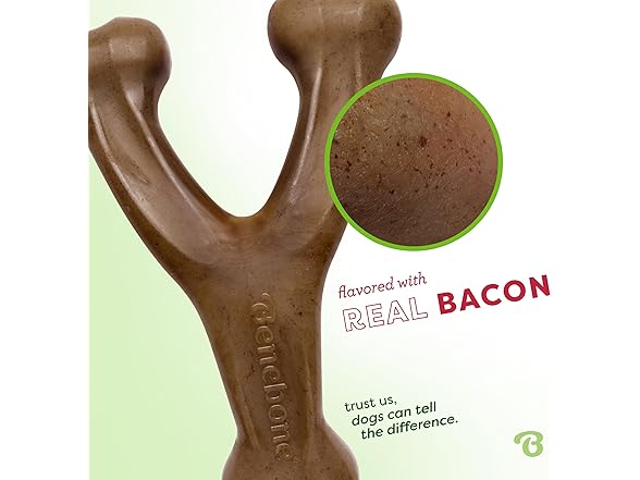 Benebone Wishbone Durable Dog Chew Toy for Aggressive Chewers, Real Bacon, Made in USA, Medium