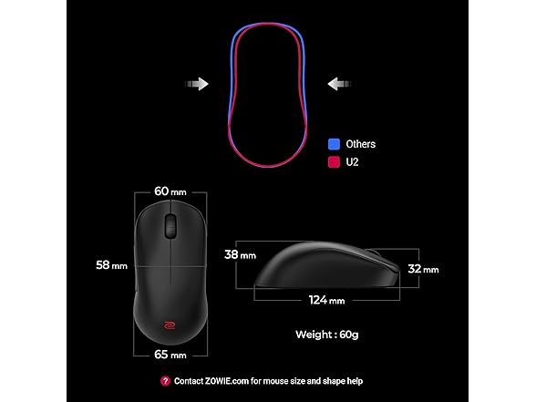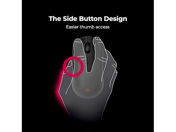 ZOWIE U2, crafted with sports science, features a symmetrical claw-grip design with a left-side curve reducing the thumb angle for faster clicks. The right-side curve aids ring finger placement, promoting balanced force and stability during mouse movement. U2's side button design, refined through experiments, facilitates easier thumb access. The enhanced receiver ensures wireless signal stability, minimizing frame drops and stuttering from interference during gaming.