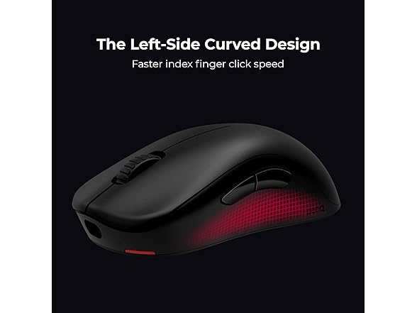 - FASTER CLICK SPEED — The left-side curved design, combined with the overall curve of the back, reduces the thumb angle, which supports a faster index finger click speed.