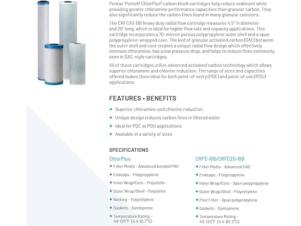 Pentair Pentek ChlorPlus20BB Big Blue Carbon Water Filter, 20-Inch, Whole House Chloramine Reduction Carbon Replacement Cartridge, 20" x 4.5", 1 Micron