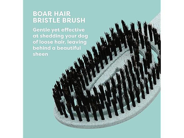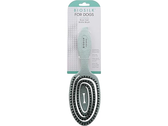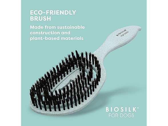 BioSilk for Dogs is an innovative way to bring the same quality and luxurious experience provided to humans to their pets. This line features easy to use pet grooming tools and dog hair brushes that will remove loose hair while keeping your dog's coat shiny and smooth. BioSilk For Dogs Eco-Friendly Boar Hair Bristle Brush is a sustainable solution to maintaining your pet's natural beauty. Made from plant-based materials, this brush for dogs shedding supports both the planet and your dog's overall wellbeing. The brush's handle is ergonomically designed for an easy grip, making it comfortable for you to use on a daily basis. his dog hair brush has a wide handle grip, making brushing an enjoyable experience for both the pet owner and the dog. This is a great dog brush for shedding. Long hair & short hair dogs alike will benefit from this type of dog brush. The best way to reduce pet shedding is to regularly brush your dog, using high quality pet brushes for dogs' shedding. This soft bristle dog brush is gentle but effective at removing loose hair and debris on pets. The spiral flex technology of the boar hair bristles contour to your dog's body, leaving behind a beautiful sheen. The bristles are gentle yet effective at shedding your dog of loose hair. Finally, you and your dog can have a brushing experience you'll both enjoy. Directions: Gently brush in the direction of hair growth, from the skin out. Begin at the neck and work your way to the tail down to the legs. Though this is a soft dog brush, be gentle around the dog's face, eyes, and sensitive areas. For best results, use dog grooming brushes daily. Safety Warning: Brush gently so as not to irritate your dog's skin. Use care when brushing your dog's fur with a dog brush and dog grooming tools and dog stuff and puppy supplies. Also look into other dog tools for grooming like a slicker brush, undercoat rake for dogs, deshedding tool, furminator for dogs, and pet hair remover.