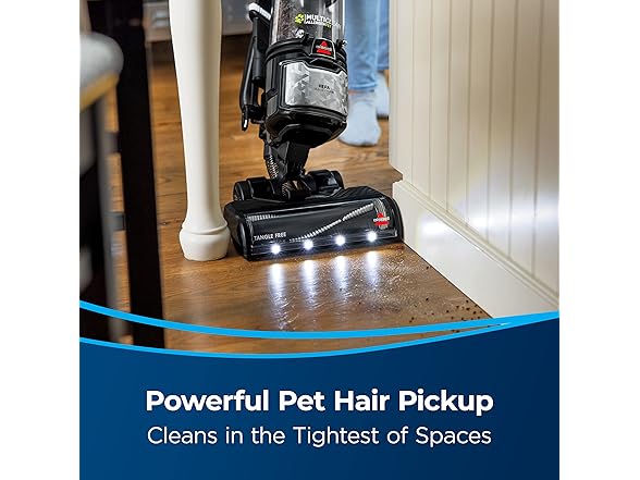The BISSELL MultiClean Allergen Pet is a lightweight pet vacuum that is designed for convenient usage to keep up with pet hair. This vacuum includes the combination of powerful pet features such as the Tangle Free Brush Roll and One Touch Easy Empty in a lightweight design with a Sealed HEPA Allergen System to trap fine dust and allergens. The compact foot is engineered to maximize maneuverability and clean in tight spaces.