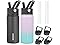 BJPKPK 2 Pack Insulated Water Bottle with Straw Lid, 18oz Stainless Steel Metal Water Bottle with 6 Lids, Leak Proof BPA Free Thermo, Cups, Flasks for Travel, Sports (Lavender Green+Black)