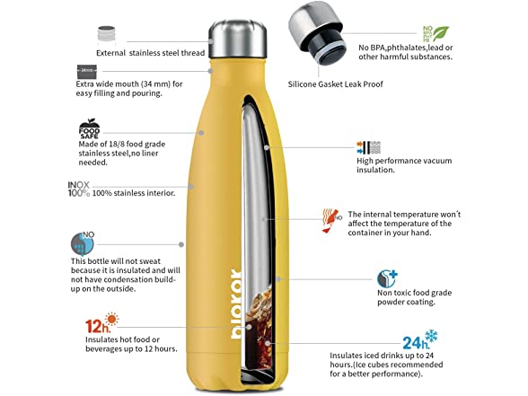 BJPKPK Insulated Water Bottles -Goldenrod, 17oz/500ml