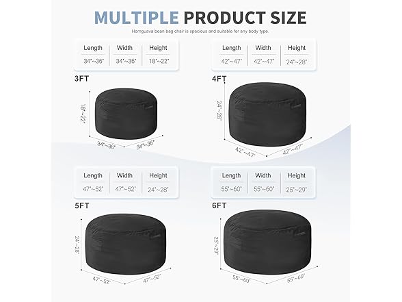 Homguava 6FT Bean Bag Chair Giant BeanBag with Memory Foam Filled, Large Bean Bag Chairs for Adults, Adult Bean Bag Chair with Dutch Velvet Cover for Living Room Bedroom-Black