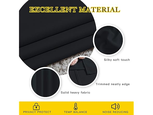 - Amazing Material: Super heavy and soft Blackout Curtain Panels are very upmarket. Besides, 85%-99% light blocking, thermal insulated, soundproof, and energy-efficient. Thread trimmed and wrinkle-free, both sides are the same color.