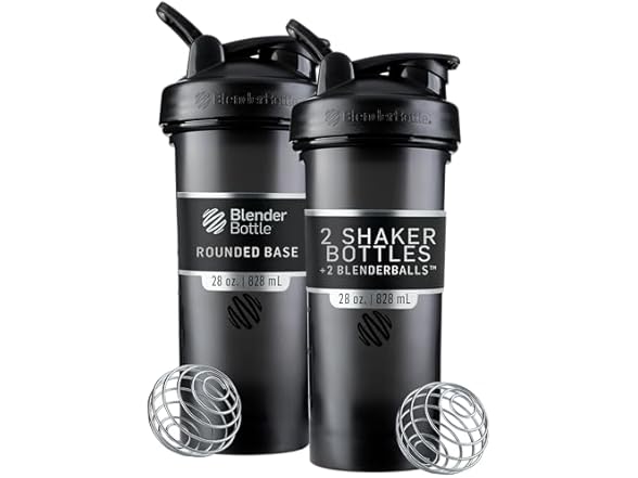 BlenderBottle Classic V2 Shaker Bottle Perfect for Protein Shakes and Pre Workout, 28-Ounce, Black, 2 Pack