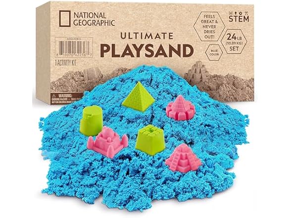This special sand sticks only to itself and not to you! This perpetually “wet” sand is perfect to mold, shape, and squeeze. Kids can build castles, pyramids, and more with the 6 different molds included. Your child will have a blast molding, slicing & shaping this amazing play sand! National Geographic Ultimate Play Sand Activity Kits are an outstanding sensory activity kids love! Here are just a few of the reasons this play sand is so great: It’s a special mixture that never dries out The sand feels and acts like it’s wet, but leaves your hands completely dry Clean-up is incredibly easy It’s designed to provide maximum fun and sensory stimulation. Children of all ages (and even adults) just can’t put play sand down! Get your play sand today and you’ll discover why everyone is raving about National Geographic Toys’ play sand – it’s really that fun! We make the highest quality hands-on science toys, and all products are backed by exceptional service. With a mission to inspire people to care about the planet, the National Geographic Society is one of the world’s largest nonprofit scientific and educational organizations.