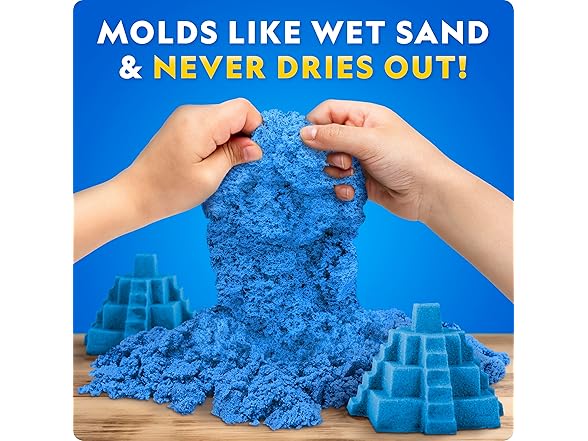 - 24 POUND SAND SET - This special mixture of sand doesn’t dry out, allowing you to use it again and again. Includes 24 lb. of blue play sand.