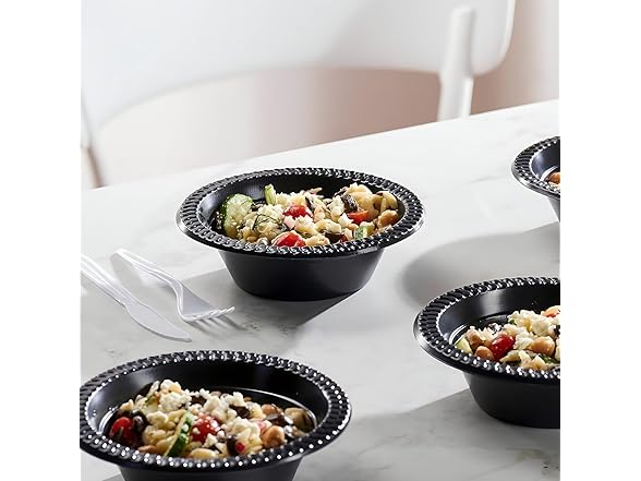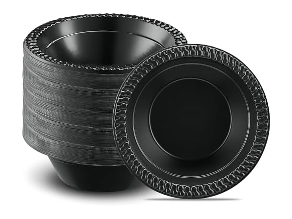 Cuisine Black Plastic Bowls - 12oz. (Pack of 100) Durable & Microwave Safe Disposable Plastic Bowls, Perfect Party Soup Bowls Disposable - Perfect Black Bowls for Parties, Weddings, And Everyday Use