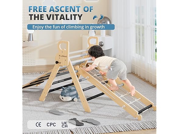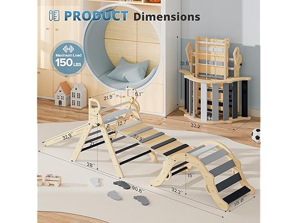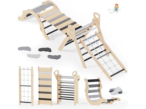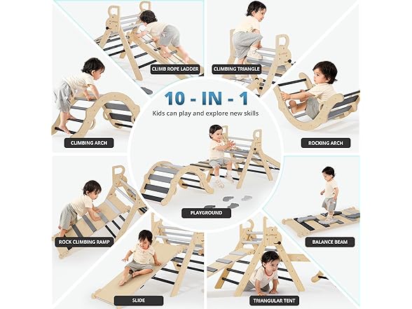 BlueWood 10-IN-1 Pikler Triangle Set Grey