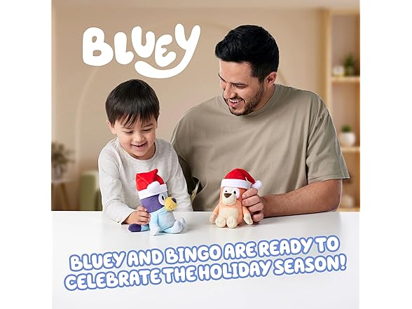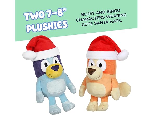 - Bluey Plush Pack: Celebrate the holiday season with Bluey to recreate memorable moments from the show with our Bluey plush toys; this two plush pack includes Bluey and Bingo figures ready for the festive cheer