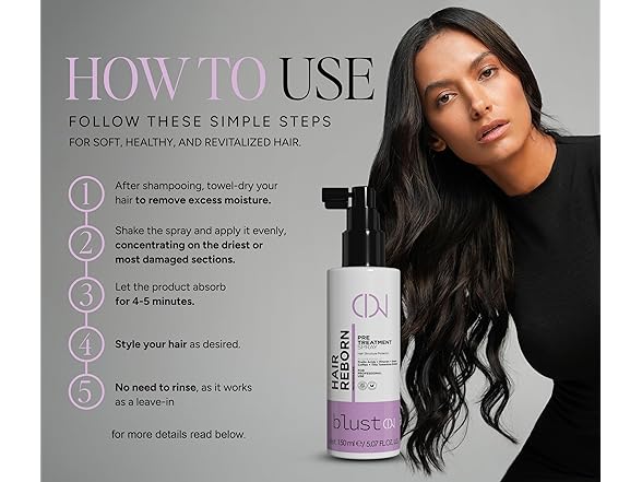 - Advanced Hair Protection & Strengthening: Blust On Hair Reborn Spray is a professional daily treatment designed to reinforce the hair fiber, helping improve strength, hydration, and resistance to damage. Ideal for salon and home routines, it works as a leave-in protector and styling prep for hair that needs extra care.