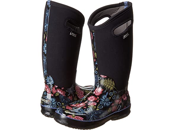Bogs Women's Classic Tall Winter Blooms Waterproof Insulated Boot, Black Multi, 10 M US