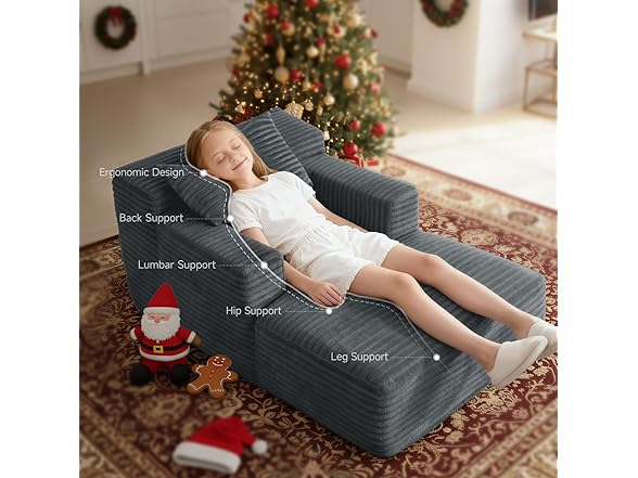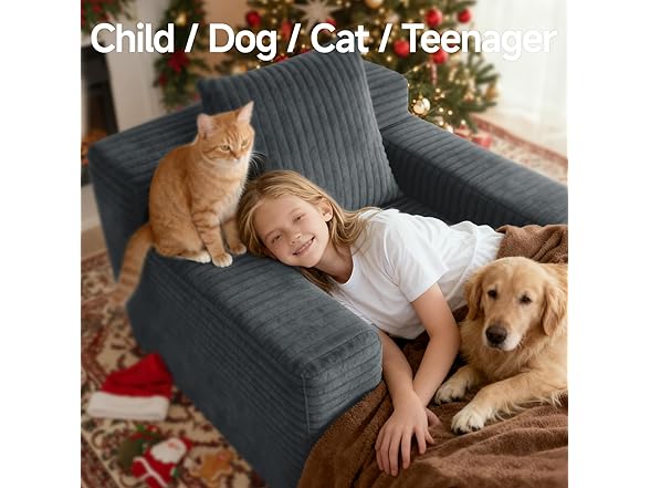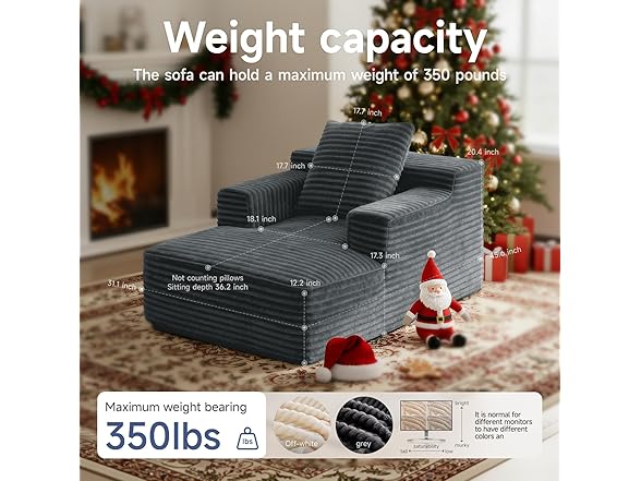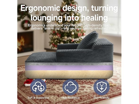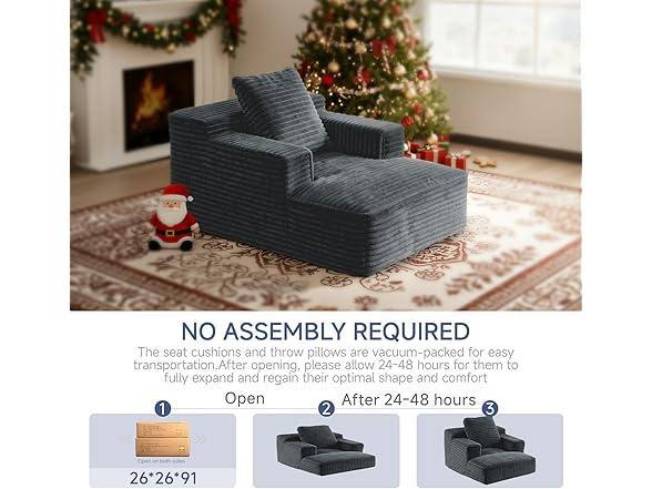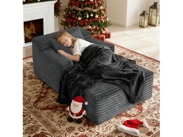 45'' Chaise Lounge Chair Indoor, Corduroy Upholstered Boneless Sofa Bed, Deep Seat Sleeper Couch Reading Chairs, Small Comfy Cloud Sofas Couches for Living Room, Bedroom, Movie Room (Dark Grey)