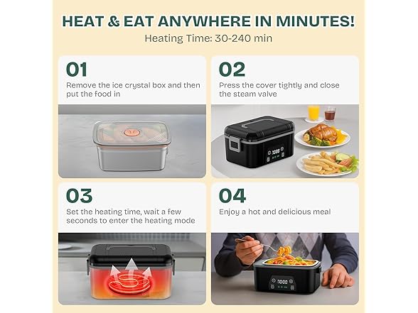 - โฑ๏ธ Smart Preset Timer with Memory Function โ This intelligent heated lunch box supports presetting ideal mealtime for automatic advance heating, ensuring food is properly warm when ready for a break. The built-in memory function saves last heating settings, removing the need for repeated adjustments and simplifying daily meal prep routines.