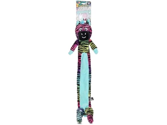 Bow Wow 24" Stuffing-Free Long Plush Dog Toy – Crinkle Body & Squeaker Head – Interactive Tug & Fetch Animal Toy – Colors May Vary