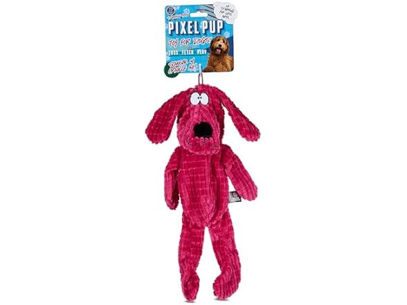 Level up your pup’s playtime with the Bow Wow Stuffing-Free Pixel Pup Dog Toy! This digital-age-inspired plush toy combines soft textures with high engagement thanks to its built-in squeaker and crinkle-filled body. Designed without stuffing to keep the mess away, it’s the perfect blend of comfort and fun for small to medium dogs. Whether your dog loves to chew, tug, or toss, the Pixel Pup brings the fun—with a surprise color in every pack (blue, green, or red).