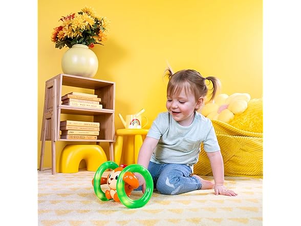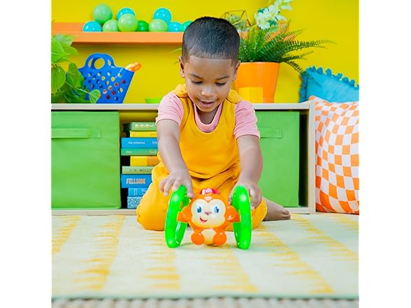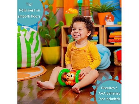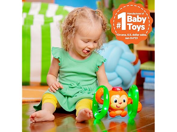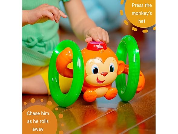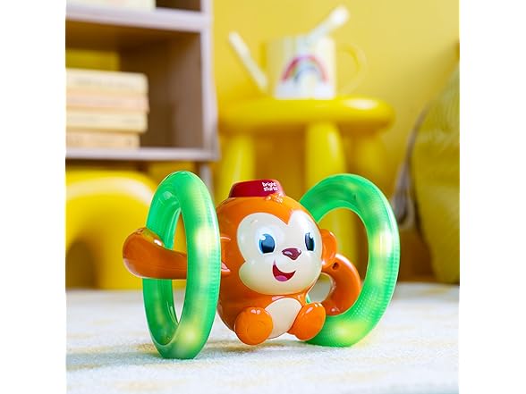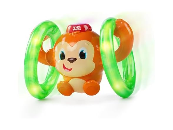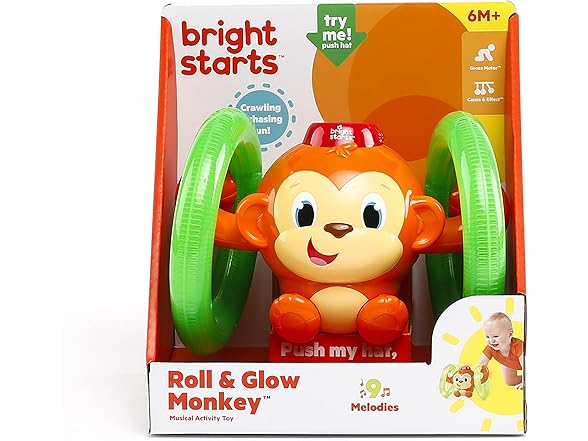 Bright Starts Roll & Glow Monkey Crawling Baby Toy with Lights and Sounds, Tummy Time Toy, 6 Months+