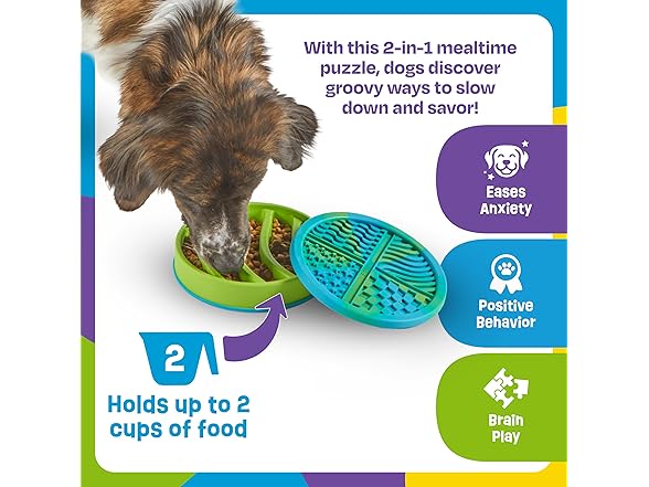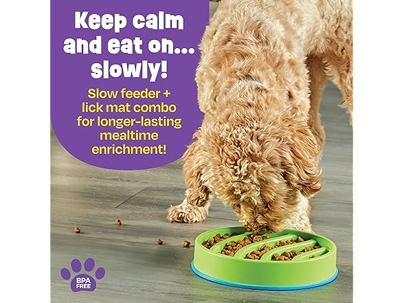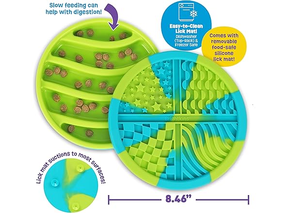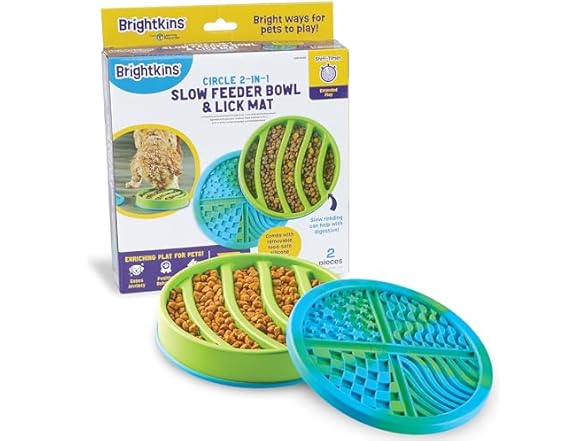 Brightkins Circle Slow Feeder and Lick Mat, Outdoor Puzzle Board, Interactive Dog Toys, Dog Birthday, Enrichment Bowls, Puppy Teething and Chewing, Stimulating Automatic Feeder