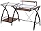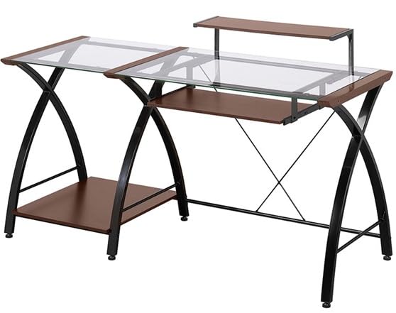 This contemporary style desk has a warm cherry silky finish with clear tempered safety glass. It features an add-on storage space for a printer or accessories and the pull-out keyboard tray has plenty of room for a mouse. The desk is ideal for any home or office.