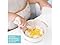 - INCLUDES BOWL, SPOON AND LID – Bowl is designed with a curved handle that’s easily held by caregivers to help with feeding; easy-to-grip double-ended silicone spoon grows with baby – one end for dipping into purees, the other for scooping solid food