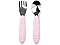 Little ones can dig into mealtime with the Bumkins Fork and Spoon Set. Stainless-steel fork and spoon heads are designed for toddlers. The concave heads help keep food on the fork or spoon, promoting self-feeding with solid foods. The outer fork tines are curved to spear foods and keep food on the fork. Handles are textured 100-percent food-safe platinum silicone, so they’re easy for little hands to grip.Dishwasher-safe. For children ages 18 months and up. Each measure approximately 5.5in long x 1.25in wide. Do not leave child unattended with product. We use third party labs to ensure the products we manufacture comply with CPSC and CPSIA standards for BPA, Lead, and Phthalates. For over 30 years, Bumkins has been creating thoughtful and responsibly made essentials for babies and kids, making parenting easier so families can cherish those special moments. Designed in Arizona, responsibly made in China.Self-feeding is important for toddlers. It helps them in developing their fine motor skills, including learning to pick up food with their hands, fingers and then utensils. They also learn to pick up and hold various sizes and shapes of food, building independence and self-confidence in doing it by themselves. Mealtime with toddlers can be a challenge as they exert their independence and decide what they do and don’t want to eat. It can get messy, but your child is continuing to learn and experience the sensory components of food: taste, flavor, smell, texture, and appearance. Self-feeding is important so children can learn to understand their own internal cues for hunger and fullness. Eating meals together is so important. The family table is a good place to set an example for your child. During mealtime they’re learning how to use utensils and watching how others eat can help.