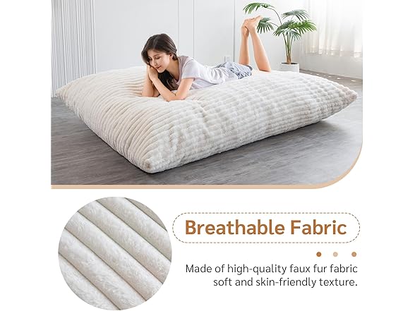 - 【Comfortable Fabric】Made with skin-friendly faux fur fabric, BYBYME bean bag to bed provides a luxurious sitting or reclining experience, outperforming traditional bean bags. You could sit in this fuzzy bean bags to enjoy your relaxing time.