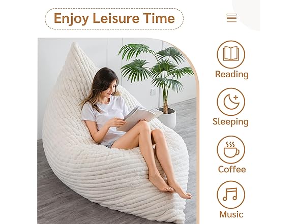 - 【High-Support Foam】Crafted from high-density integrated foam, this bean bag sofa offers superior comfort and support. The beanbag chairs with high rebound could provide extra softness and stuffed support and keep the shape for prolonged use.Simply give it a gentle shake after use, and it will return to its original shape.