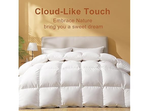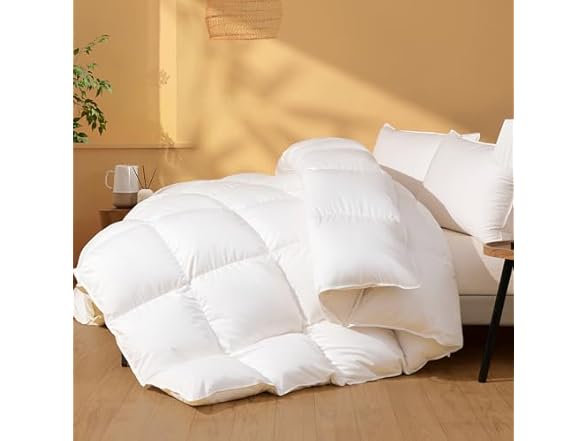 Feather Down Fiber Comforter California King Size, Ultra Soft Fabric Duvet Insert, Luxurious Hotel Collection White Bedding Comforters, All Season Medium Warmth 104 x 96 Inch.