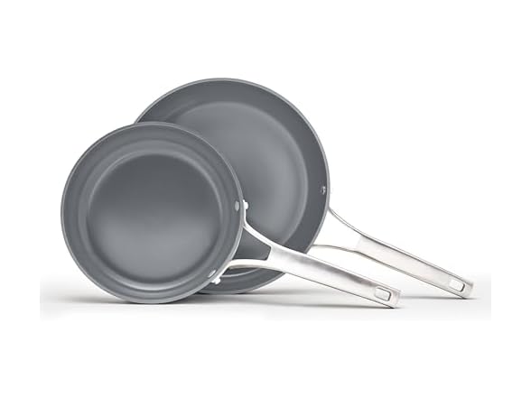 Embrace your inner gourmet, while elevating the look of your kitchen, with the Calphalon® Premier Ceramic Nonstick Frying Pan Set. Designed for home cooks, this fry pan set will inspire your most delicious culinary adventures. The durable cooking surface keeps food from sticking, and when you're finished cooking, cookware wipes clean in seconds with Quick Cleaning Technology. Hard-anodized ceramic-coated aluminum construction delivers fast, even heating while eliminating hotspots for precision searing, sautéing, and browning—ensuring exceptional results every time. Constructed with a PFA-free, scratch resistant and metal utensil-safe ceramic nonstick surface, cooking becomes a pleasure. And with Quick Clean Technology, cleanup's a breeze. Long stainless steel handles stay cool on the stovetop, while pans are oven safe up to 500 degrees F for stovetop-to-oven versatility. Calphalon® Premier Ceramic Nonstick frying pans are the must-have tool for any kitchen enthusiast, delivering a gourmet experience from frying fluffy omelettes to perfecting seared scallops and everything in between.