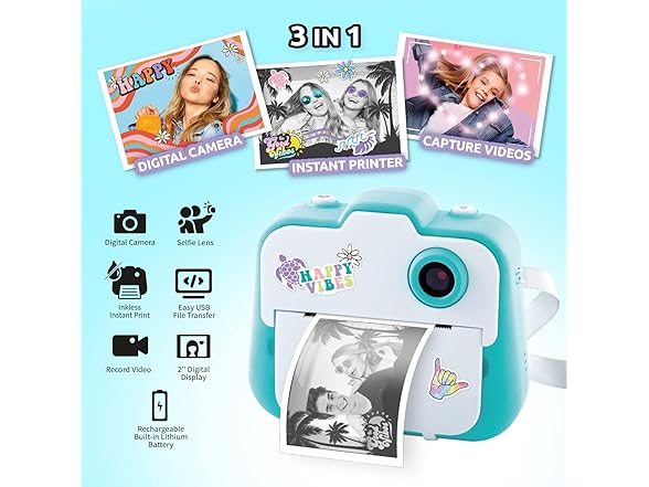 - INNOVATIVE AND ECONOMIC DIGITAL INSTANT PRINTING CAMERA FOR CHILDREN: Take a picture of your environment, family or friends and print instantly. Since thermal paper is much more economical than photo paper, you can take and print the photos without moderation to keep them as souvenirs or as a gift. The colour LCD display makes it easy to navigate menus and frame / view photos. This kit allows you to print more than 250 photos