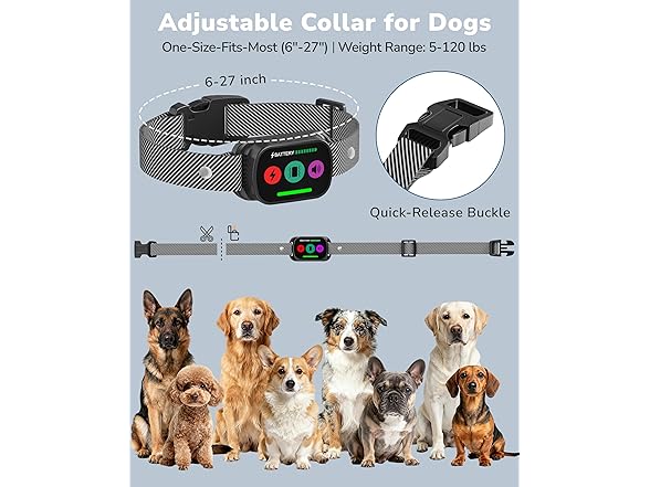 - 【Lightweight Comfort & Universal Fit】Featuring a soft and durable nylon strap, Canivix shock collar for dog ensures a gentle fit during training. It fits tiny 5-120lbs dogs, accommodating neck sizes from 6-27 inches. Two sizes of silicone cover are available to suit dogs with different coat thicknesses.