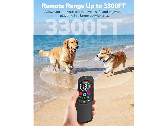 - 【Reliable 3300FT Control Range】Our dog electric collar provides stable command up to 3,300 feet, ensuring you easy take control of off-leash activities. Train with confidence in open spaces like parks, beaches, and fields. Allow your dog never loses the joy of running free while training.