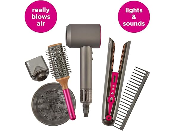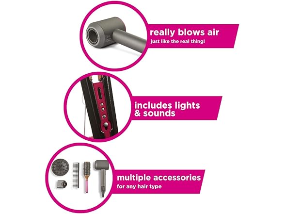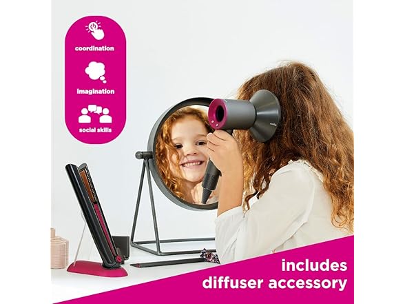 Casdon Dyson Toys - Supersonic & Corrale Deluxe Styling Set - Toy Straightener & Hairdryer with Real Function - Features Interactive Lights & Sounds - for Children Aged 3+