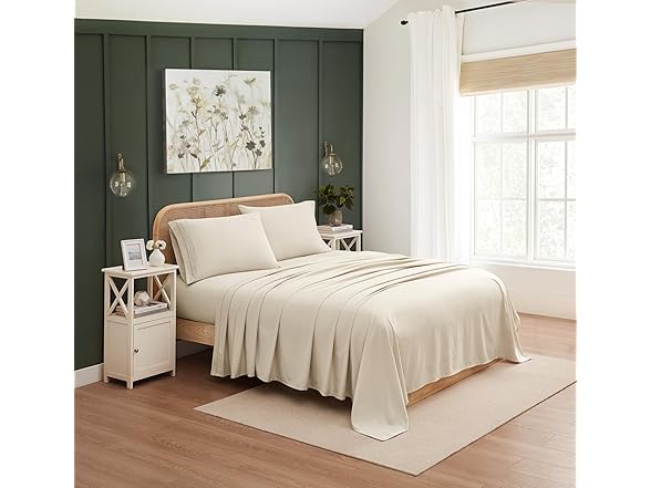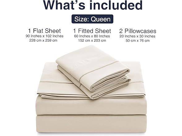 CASUAL LIVING Queen Sheets Set 4 Piece Cooling Sheets with 2 Pillowcases Soft Microfiber Hypoallergenic Washable Bed Set Deep Pocket Lightweight Bedding Elasticized for Bedroom, Queen, Beige