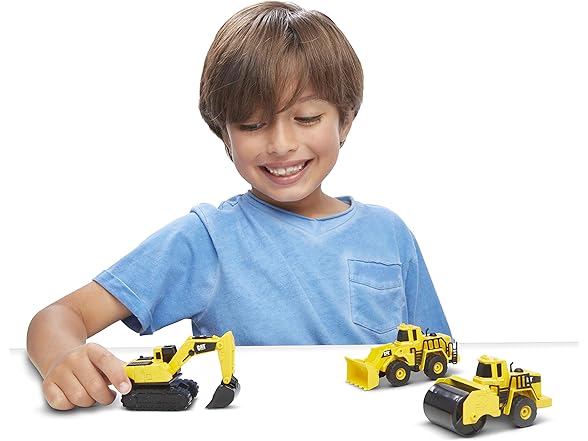 - Three Machines, One Set – Pocket-size wheel loader, excavator and steam roller deliver a complete jobsite fleet right out of the box; great starter pack for any Cat collection.