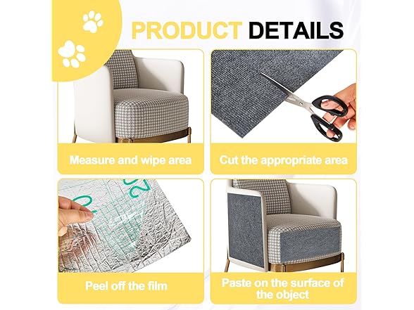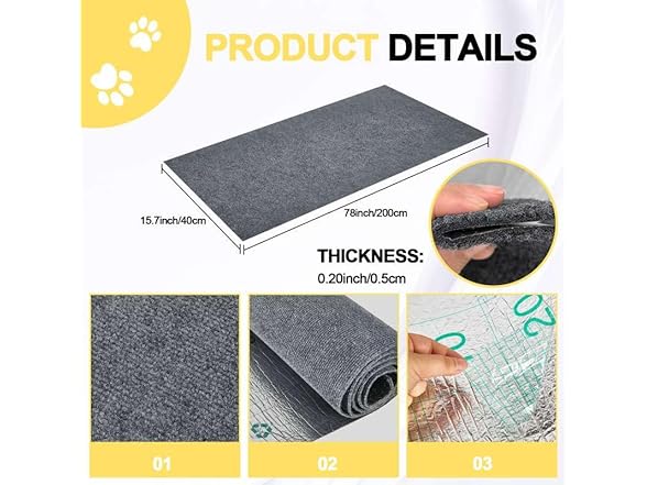 Cat Scratch Couch Furniture Protector, Furniture Protector from Cats, Adhesive Cat Scratch Pad Deterrent for Furniture (Grey, L78in)