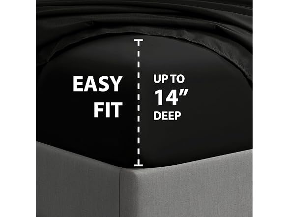 - EASY FIT - The fitted sheet is fully elasticized with extra strength elastic and can easily accommodate mattresses between 10" - 14” thickness for a snug fit.