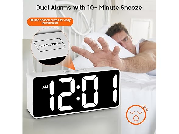 Small Digital Alarm Clock, Large Big Numbers Display with Brightness Dimmer,Dual Alarm, Snooze,12/24Hr,Adjustable Volume