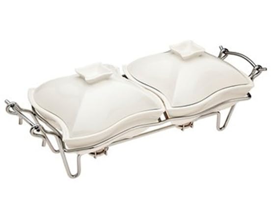 Ceramic Sq Double Warmer on Chrome Rack
