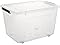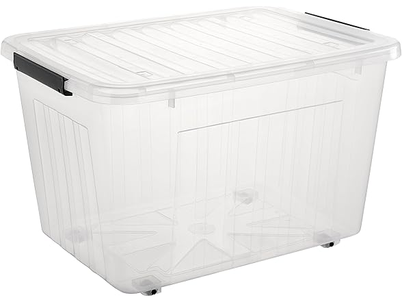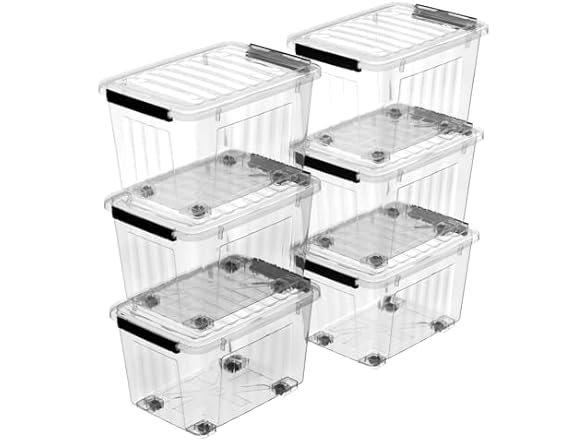 Cetomo Plastic Storage Bins, Lidded Storage Box with Wheels for Home Office Dorm, Wheeled, Stackable, Clear, 85Quart-6 Pack