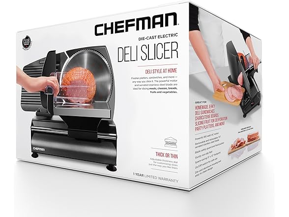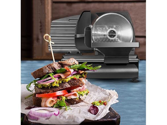 - SPACE SAVING DESIGN: With a sleek, compact design, this 9" x 12" deli slicer is small enough for most cabinets and countertops; perfect for weekday lunch prep or crafting gourmet meals. Great for making homemade beef jerky, deli sandwiches, charcuterie boards, sliced fruit for dehydrating, party platters, appetizers, and more.