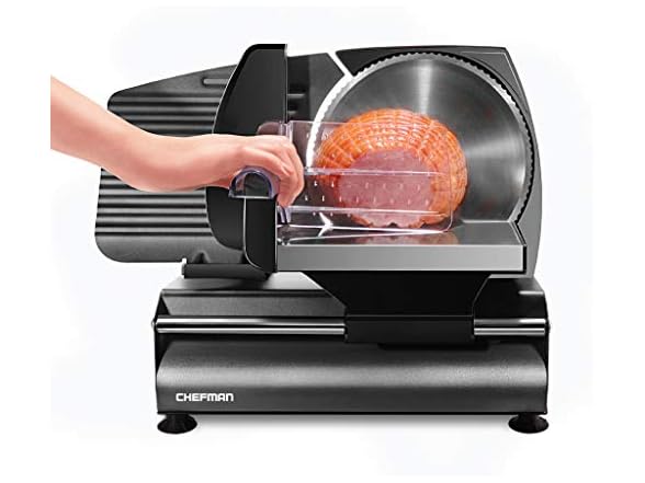 - SAFE AND SMART: Sturdy non-slip feet, blade safety guard and food pusher ensure that the food slicer will stay in place so you can keep a firm grip while operating; on/off switch offers added safety so you can cut safely for a customized, clean slice - every time.