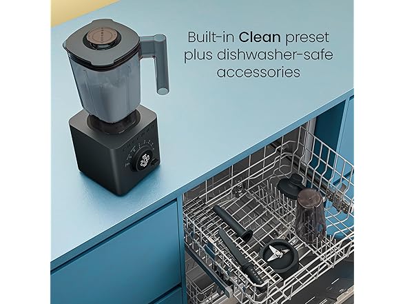 - TWO WAYS TO CLEAN: Keeping this blender for kitchen clean is a breeze. Either run the “Clean” preset with soap and water or throw the accessories directly into the dishwasher and avoid any hassle. The innovative blunt-blade design ensures safety while cleaning without sacrificing performance.