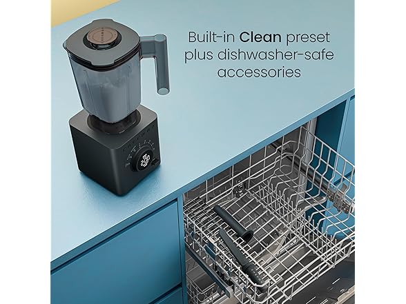 - TWO WAYS TO CLEAN: Keeping this blender for kitchen clean is a breeze. Either run the “Clean” preset with soap and water or throw the accessories directly into the dishwasher and avoid any hassle. The innovative blunt-blade design ensures safety while cleaning without sacrificing performance.
